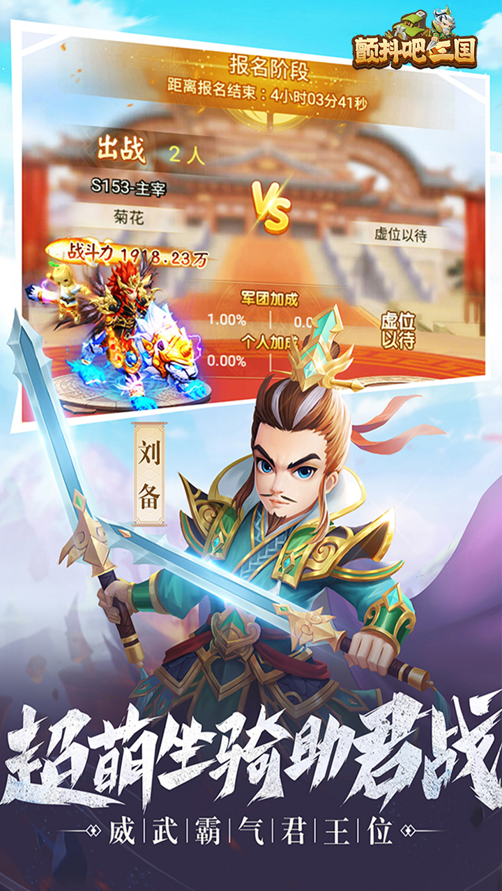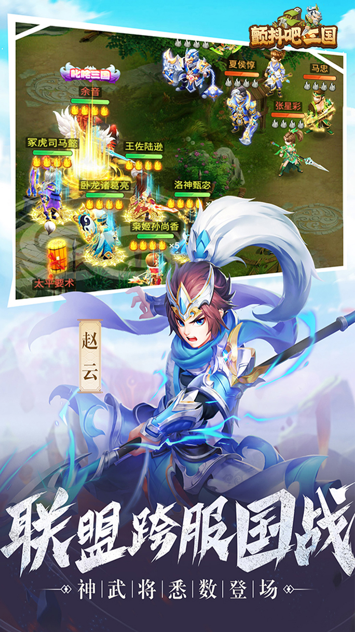 《颤抖吧三国》以为三国背景,重现经典回合战斗模式,游戏各路猛将尽数登场,造型精美英姿重现。更有丰富多变的养成系统,培养心仪神将,玩家能亲身参与调兵遣将与其他玩家争霸三国之巅,完成一统大业!