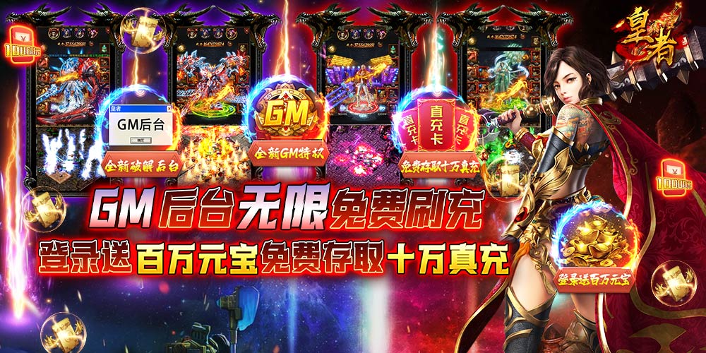 皇者(全免破解工具)是一款角色扮演类四职业传奇,免费打金刷充福利版!开局领取vip15,百万元宝,豪华时装套!上线即激活破解工具,打怪通关获得额度,可免费激活超级每日礼包!超多福利,超多免充,战力快速直升百亿!碾压过往任何版本!打怪根本不怕被人抢了,快来邀请你曾经的兄弟上线,真热血pk传奇邀你来战! 1、上线送vip15,100万元宝、豪华时装套,开局免费激活破解工具,打怪或者日常任务获得钱包余额,额度可直接免费激活超级礼包,战力百亿轻轻松松! 2、每日登录送巨额真充卡,海量豪华超值礼包,战力百亿轻轻松松! 3、充值比例1:10000,首充任意档位,最高可获得20倍返利,更有三大豪华投资礼包附送! 4、大幅修改游戏爆率,boss疯狂爆,保证跨服装备轻轻松松爆满地,不花钱也能当大佬,免费玩家首选! 5、内置战法道买断商城,激活可以将超级神装升至满阶,酷炫动态时装激活就送! 【充值返利】 返利金额仅限单日累积,不能多日累积! 充值月卡、终身卡、礼包、基金计入返利 注:返利货币为元宝!(次日自动返利,无需申请) 充值30-99元,返利30% 充值100-499元,返利50% 充值500-999元,返利70% 充值1000-2999元,返利100% 充值3000-4999元,返利120% 充值5000-9999元,返利150% 充值10000-29999,返利200% 充值30000元以上,返利300% 返利申请是否需要角色id:需要 月卡是否算VIP经验:算 月卡是否算首充:否
