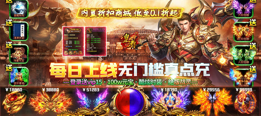 《皇者》是一款角色扮演传奇四职业传奇,全新福利升级补贴商场版本来袭!每日1折商城补贴大甩卖,最低0.1折。各大系统装备道具时装均1折上架,先到先得!上线送满vip15,百万元宝,绝版时装套!每日登陆游戏就能免费点充真充,能拿多少全看手速!全新GM商店大改版!全系列的至尊雷霆免费送!终极魔神海神套装免费兑换!轻松养成超百亿GM扶持号!兄弟快上线,真热血pk传奇邀你来战!
