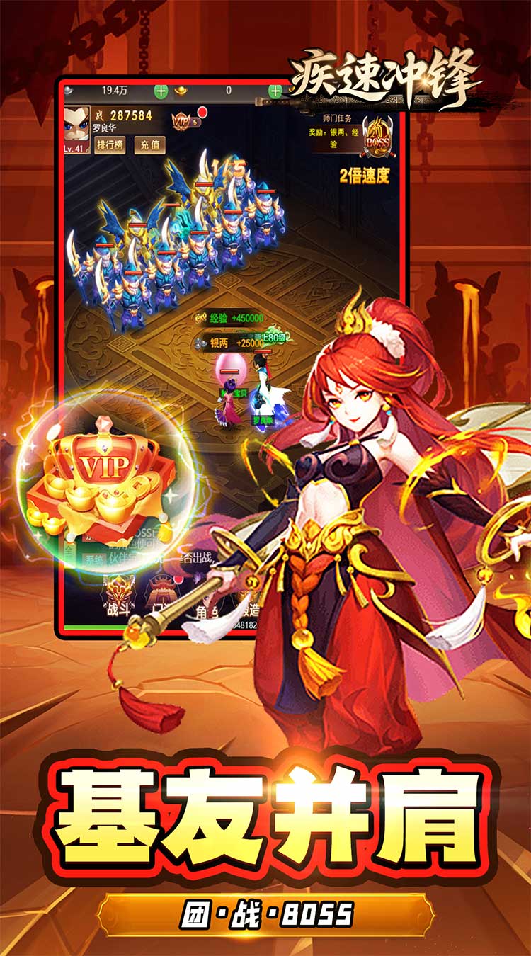 • 这绝对是你以往没有体验过的快乐。天神开局送满V直达GM1、送88888绑元,再送SSSR刑天化身。超萌宠物助你征战四方。通关送红颜碎片,还有限定称号等你来拿。游戏在保留经典回合玩法的基础上,突破传统模式,爽快升级、激情跨服PK、极品装备全靠打、全新各种捕抓宝宝独此一家。百变个性时装、称号、坐骑、法宝等外显效果,打怪泡妹两不误~让你寻找回当年满满的回忆。你还在等什么,就是你想要的,赶紧下载试试吧
