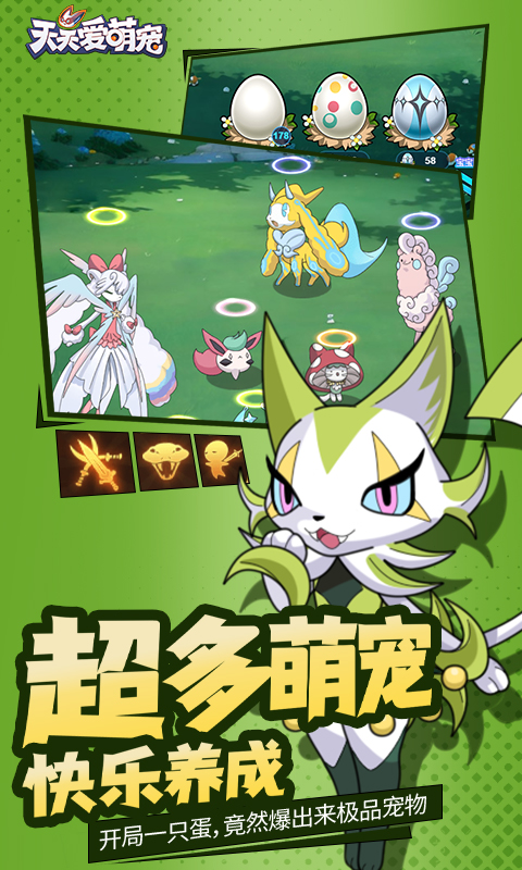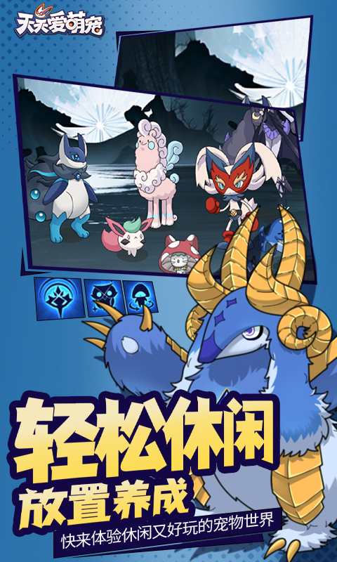 《天天爱萌宠》是一款休闲卡通萌宠养成游戏,集合了经典梦幻等回合制核心战斗玩法,经典宝宝养成,洗练等,再配合简单休闲的开蛋升级养成体验,游戏非常适合轻松休闲玩家,以及回合制养成玩家。核心玩法涵盖了宠物养成,宠物技能洗练,宠物抽取,回合制多人战斗等核心玩法,同时也具备竞技场、航海战役等多人交互竞争玩法,让大家可以带上自己养成的宠物进行同台竞技!游戏关卡主要为野外战斗,在《天天爱萌宠》魔法世界中,不同地域的环境下,生存着各种不同种类的萌宠宝贝,玩家需要逐步探索不断解锁全新的地域以及魔法宠物!